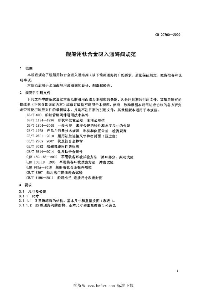 CB 20700-2020 舰船用钛合金吸入通海阀规范