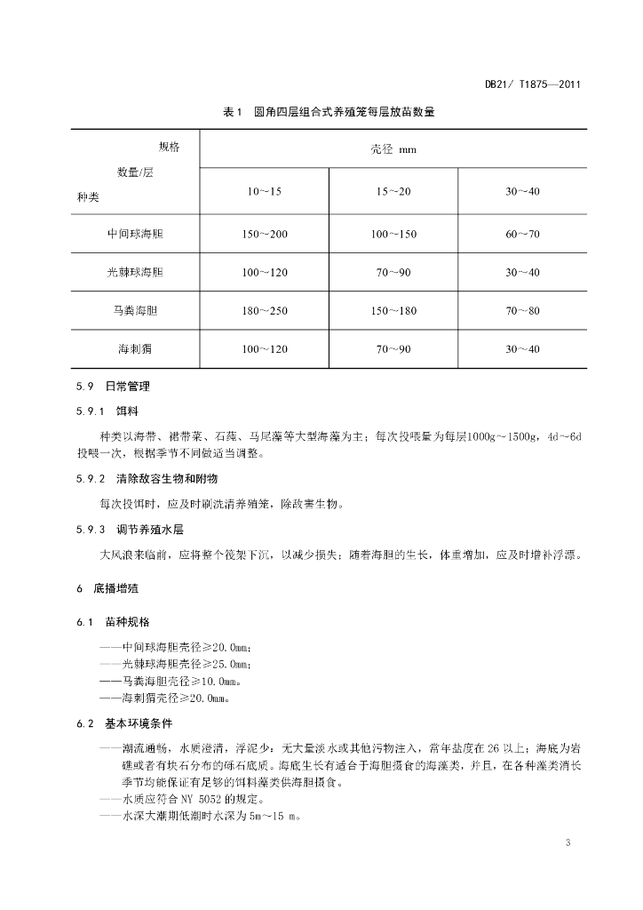 DB21/T 1875-2011 农产品质量安全 海胆增养殖技术规程