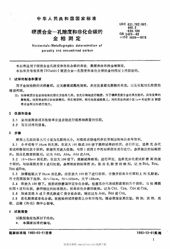 GB/T 3489-1983 硬质合金 孔隙度和非化合碳的金相测定