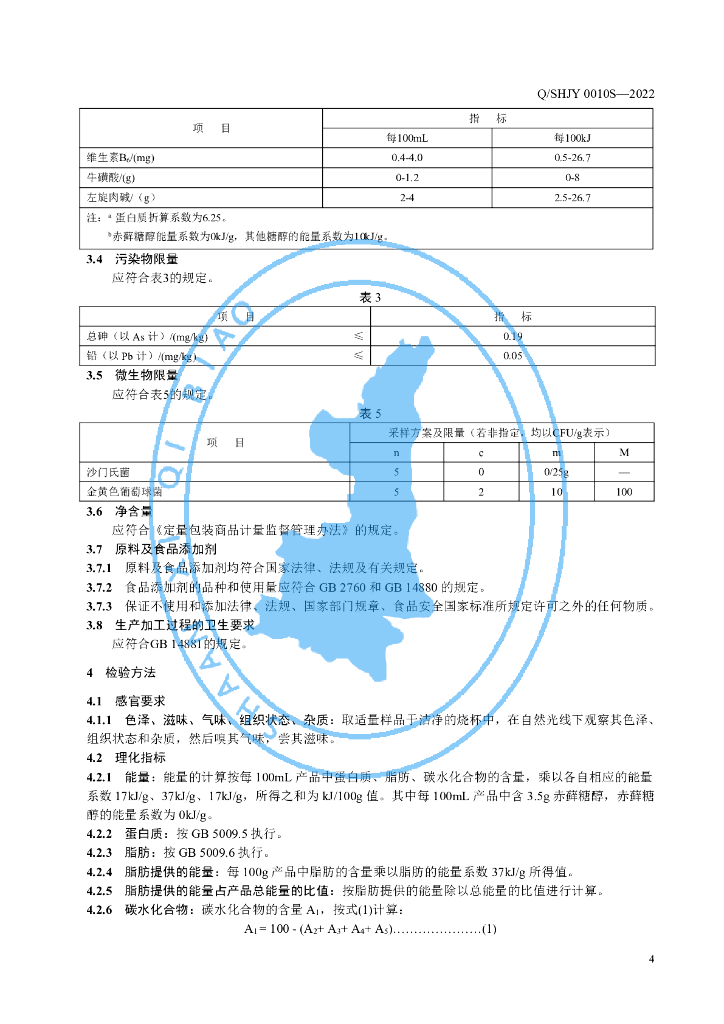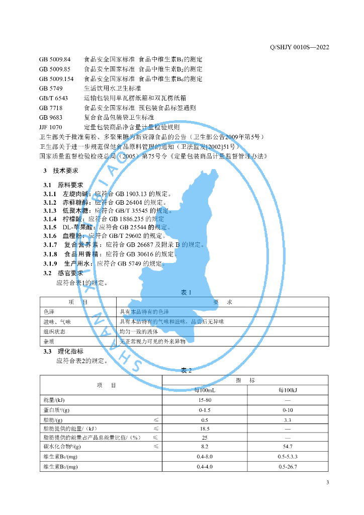 Q/SHJY 0010S-2022 运动营养食品 控制能量类-促进能量消耗 左旋肉碱营养补充液