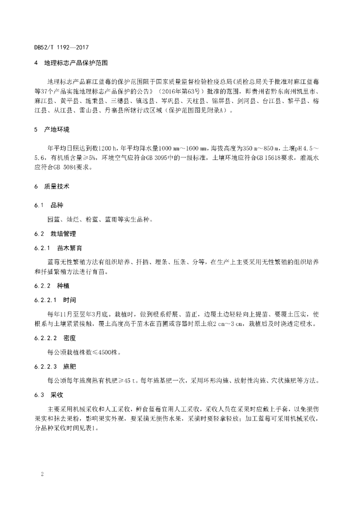 DB52/T 1192-2017 地理标志产品 麻江蓝莓