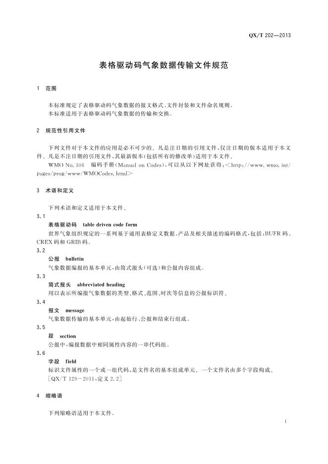 QX/T 202-2013 表格驱动码气象数据传输文件规范