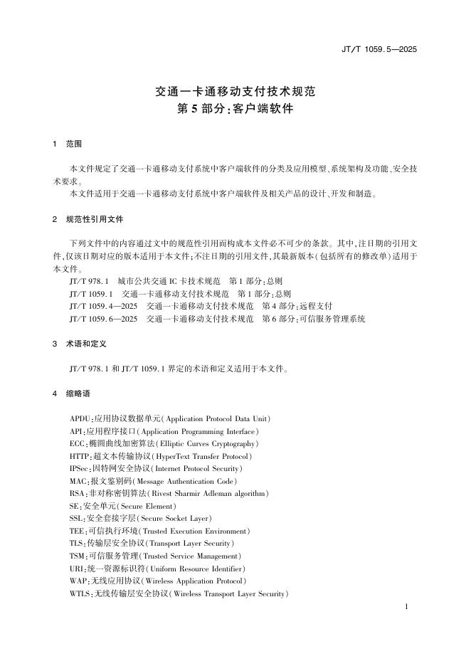 JT/T 1059.5-2025 交通一卡通移动支付技术规范 第5部分:客户端软件