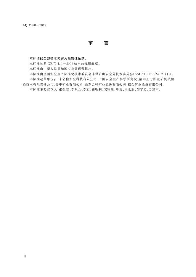 山东公信安全科技有限公司、中国安全生产科学研究院、洛阳正方圆重矿机械检验技术有限责任公司、鲁中矿业有限公司、山东金岭矿业股份有限公司、招金矿业股份有限公司。