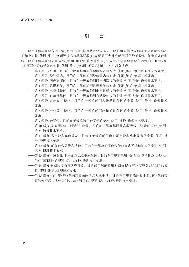 JT/T 680.13-2025 船用通信导航设备的安装、使用、维护、修理技术要求 第13部分:406MHz卫星紧急无线电示位标