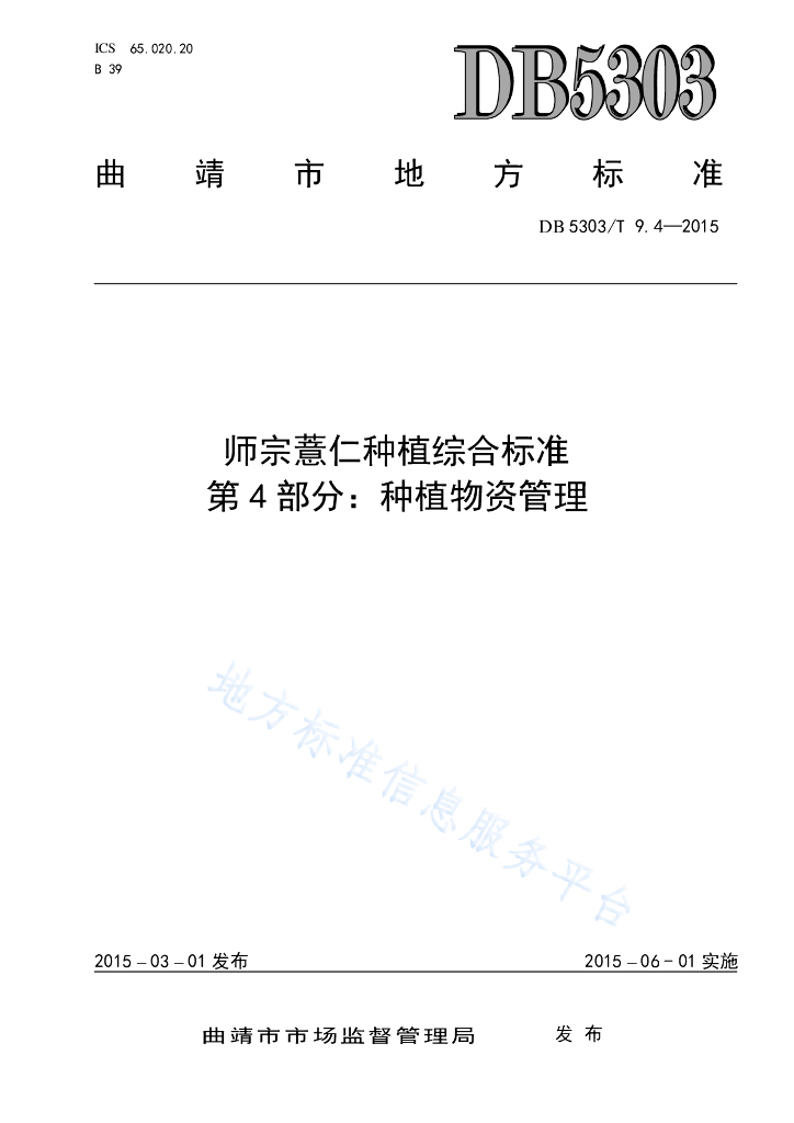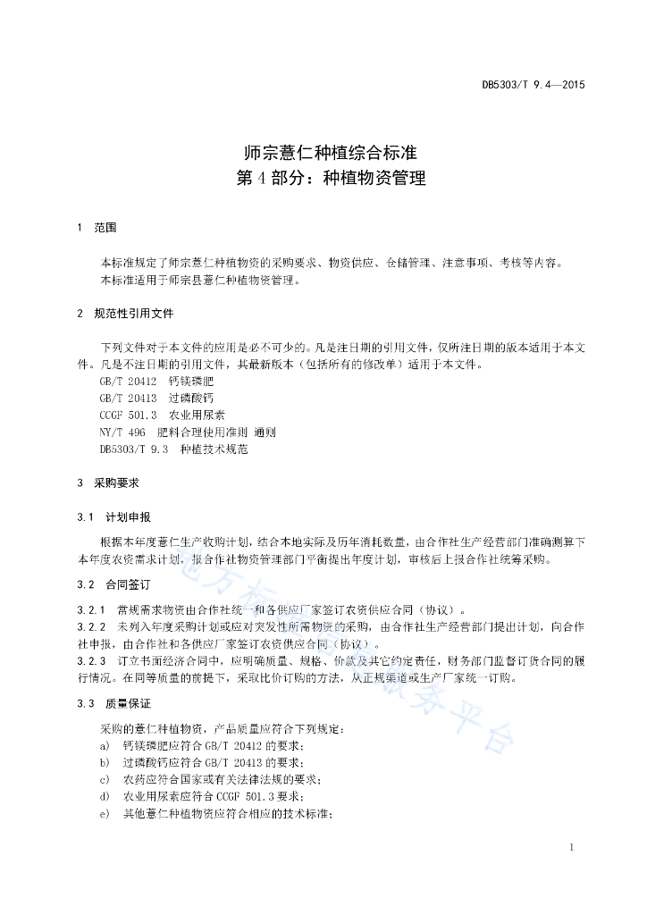 DB5303/T 9.4-2015 师宗薏仁种植综合标准第4部分:种植物资管理
