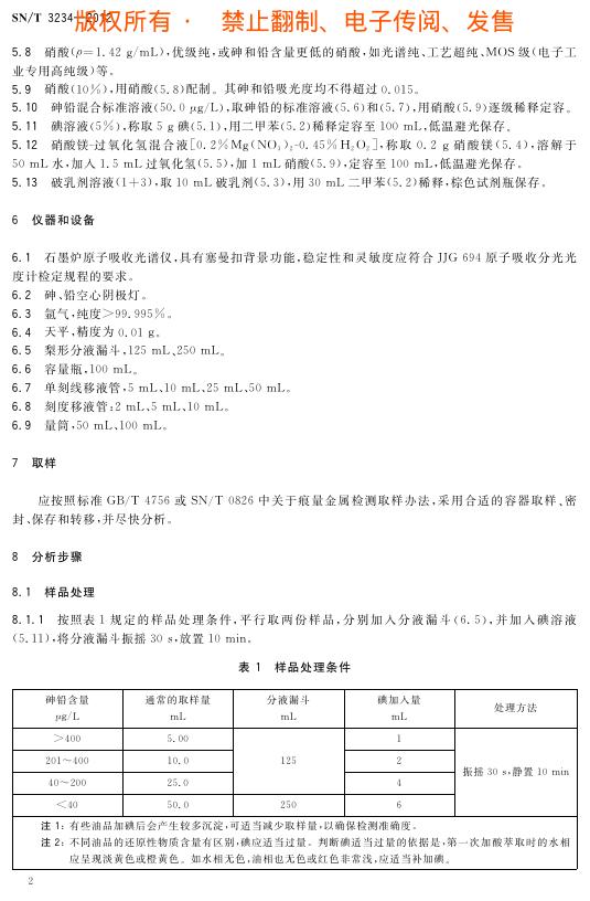 SN/T 3234-2012 凝析油中砷和铅含量测定 石墨炉原子吸收法