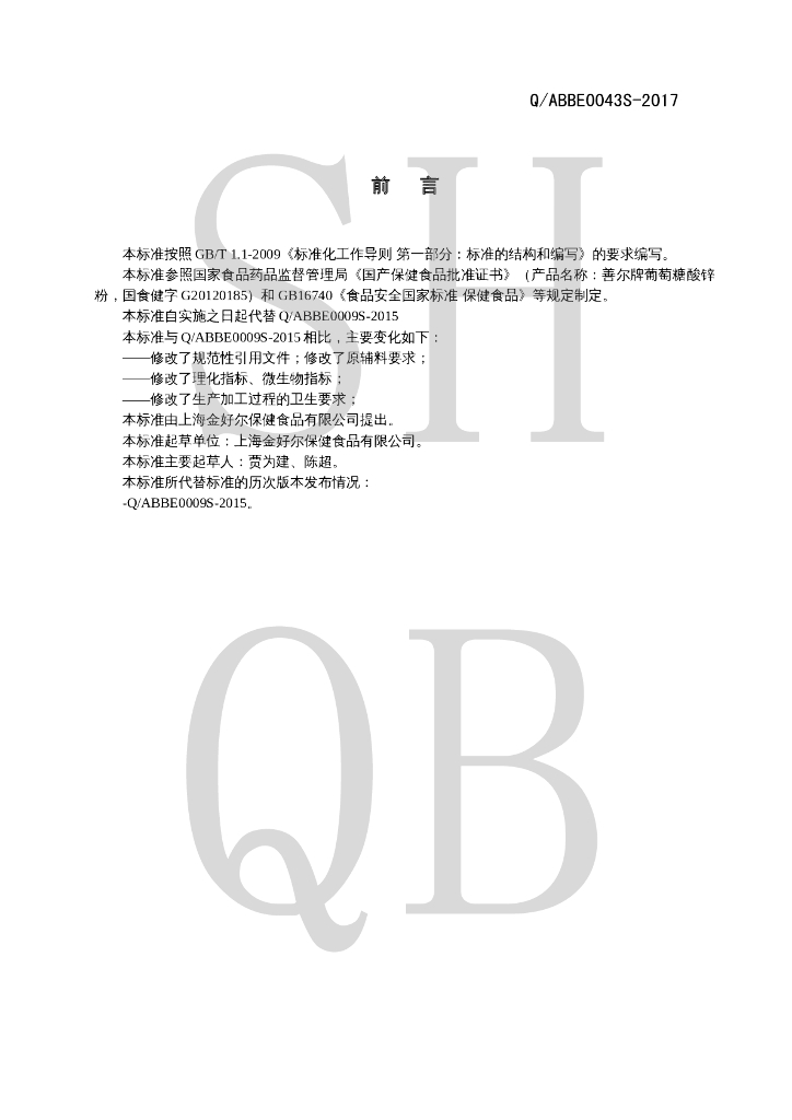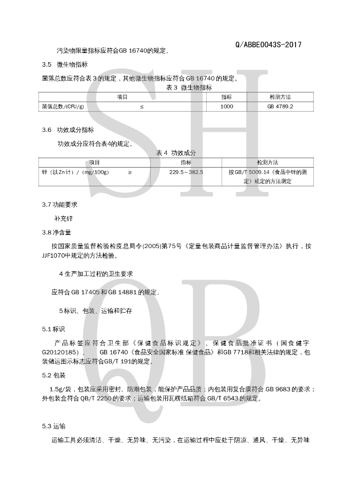 Q/ABBE 0043S-2017 善尔牌葡萄糖酸锌粉