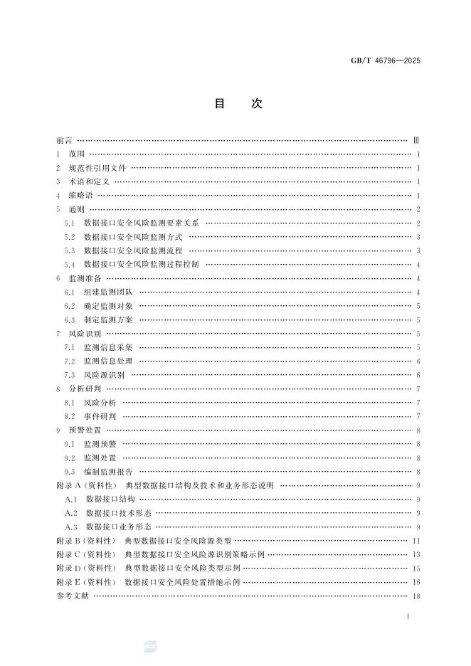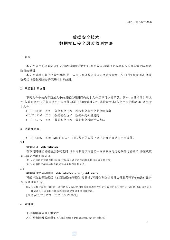 GB/T 46796-2025 数据安全技术 数据接口安全风险监测方法