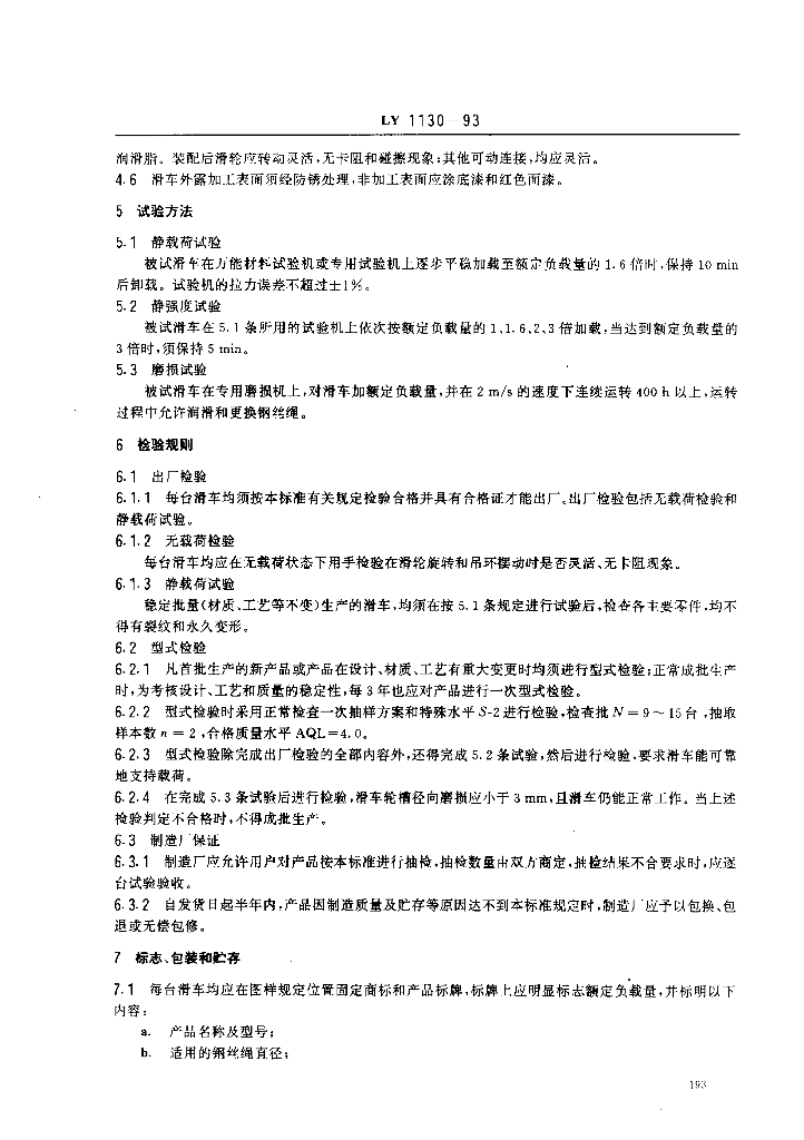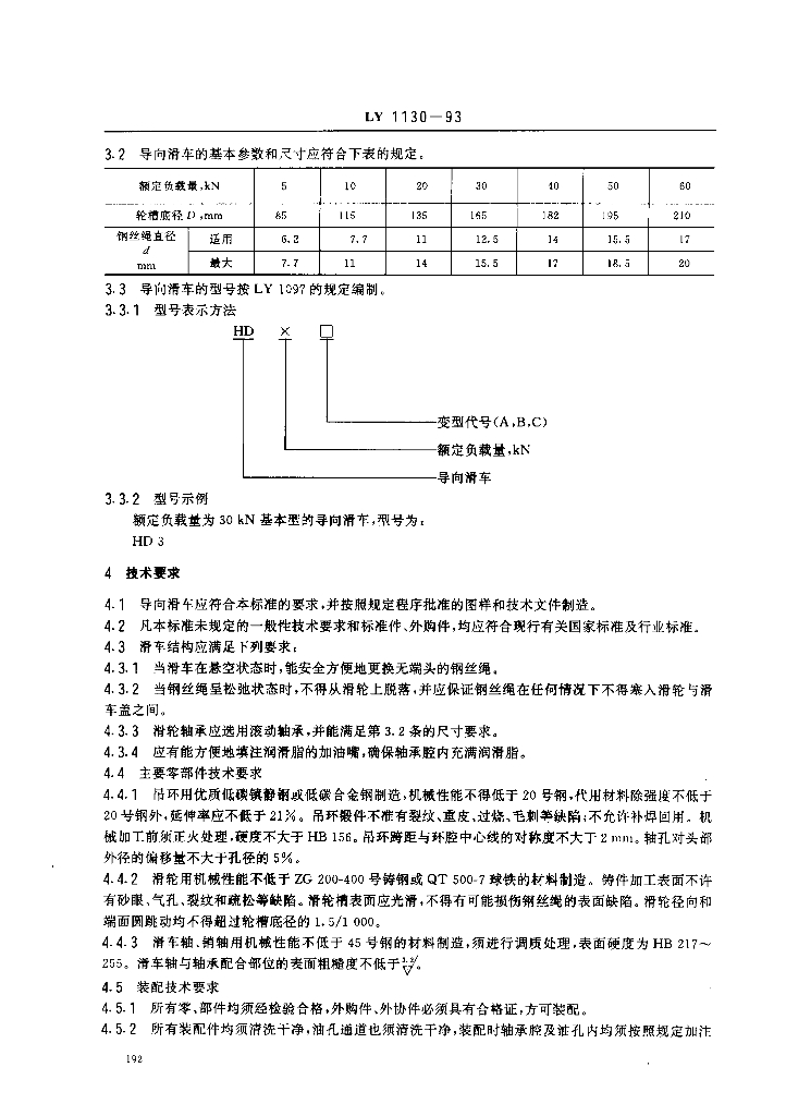LY 1130-1993 林用架空索道 导向滑车