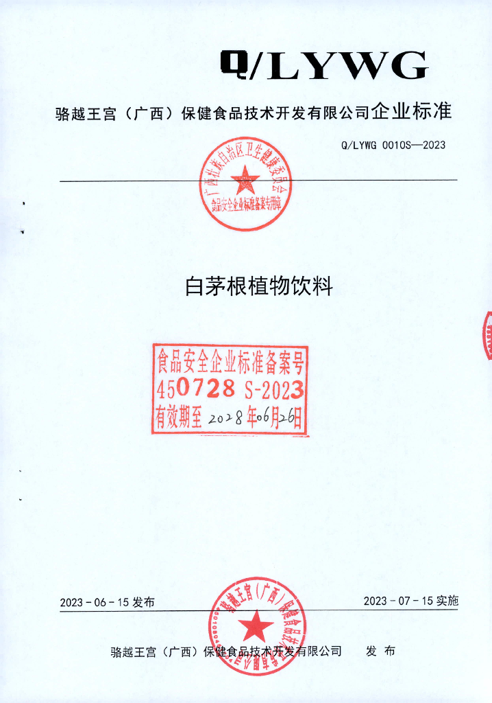 Q/LYWG 0010S-2023 白茅根植物饮料