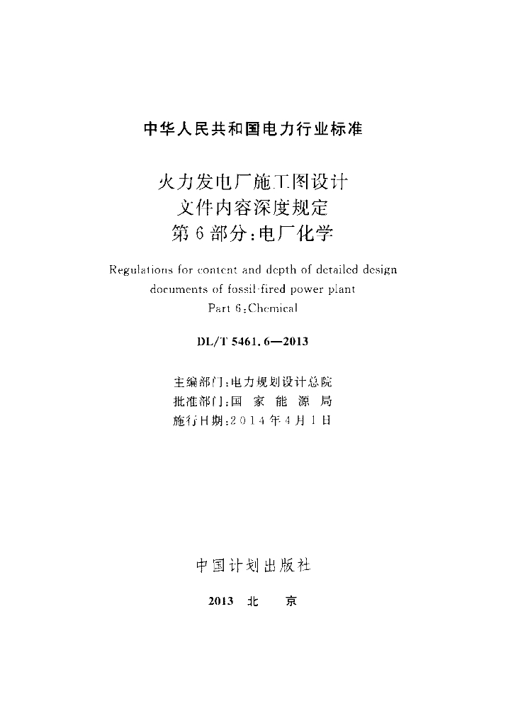 DL/T 5461.6-2013 火力发电厂施工图设计文件内容深度规定 第6部分:电厂化学