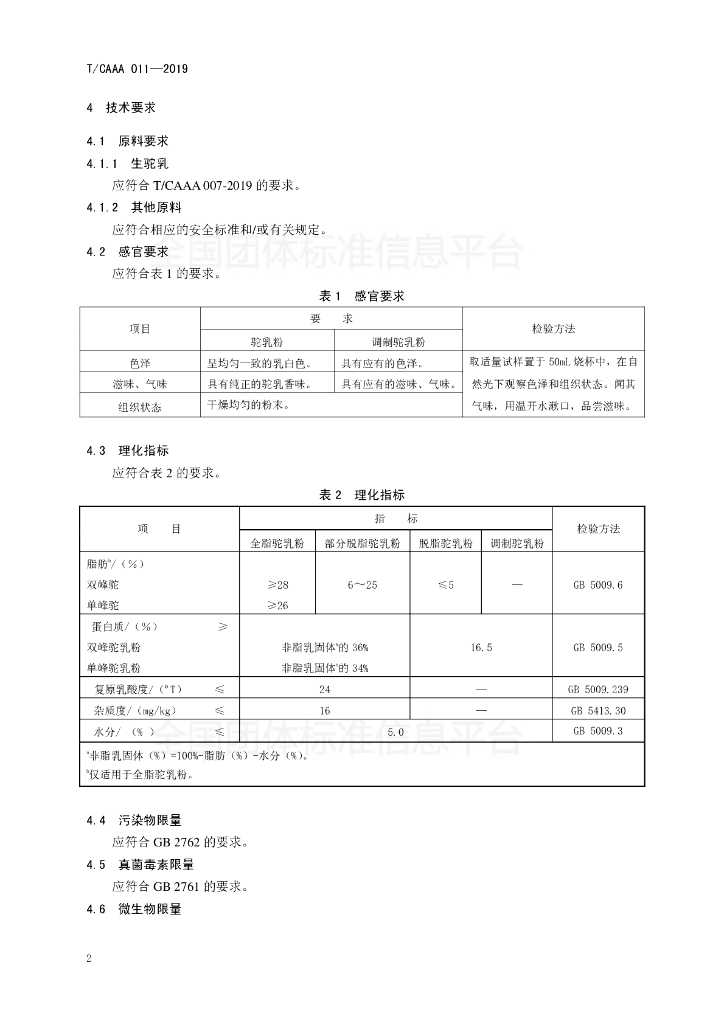 T/CAAA 011-2019 驼乳粉