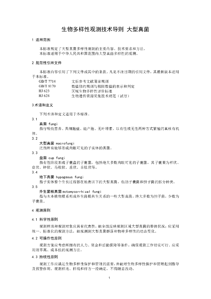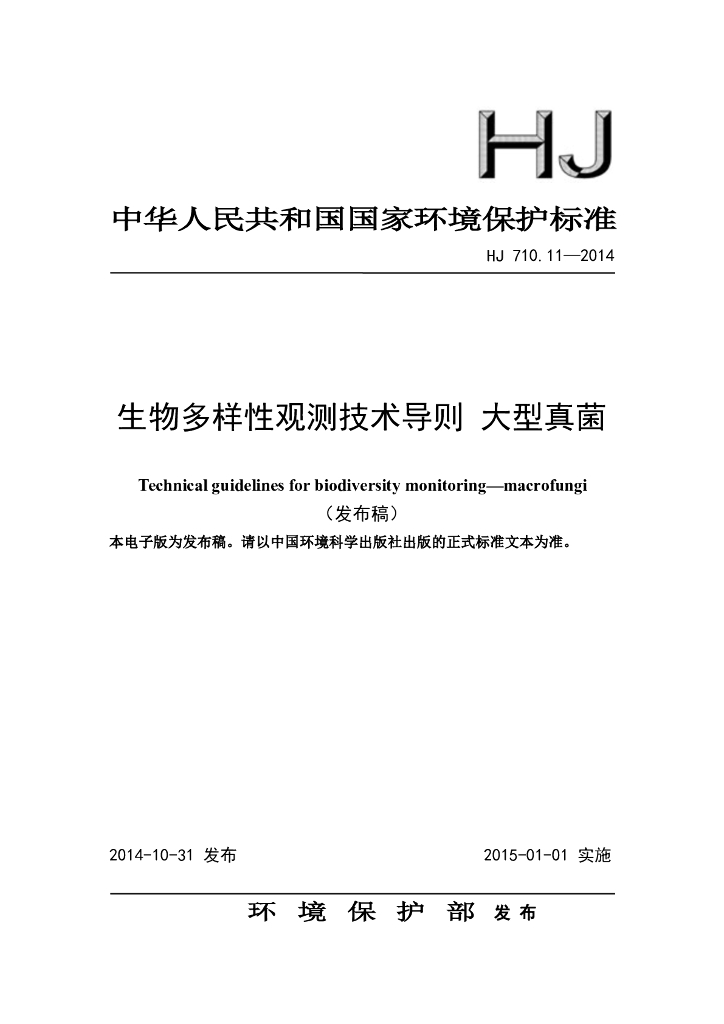 HJ 710.11-2014 生物多样性观测技术导则 大型真菌