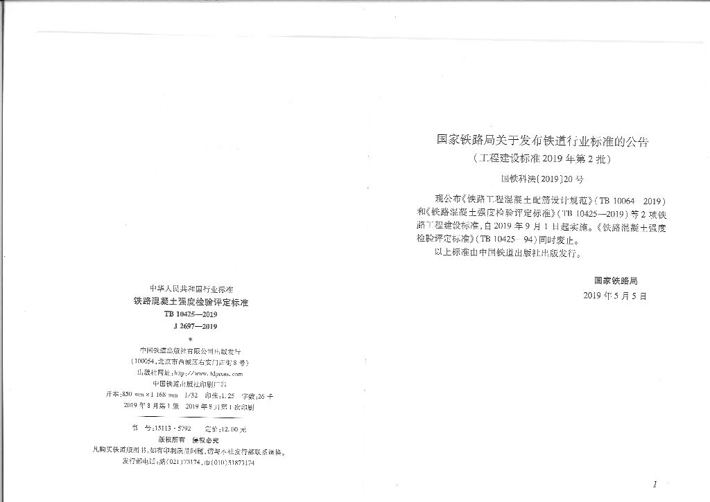 TB 10425-2019 铁路混凝土强度检验评定标准