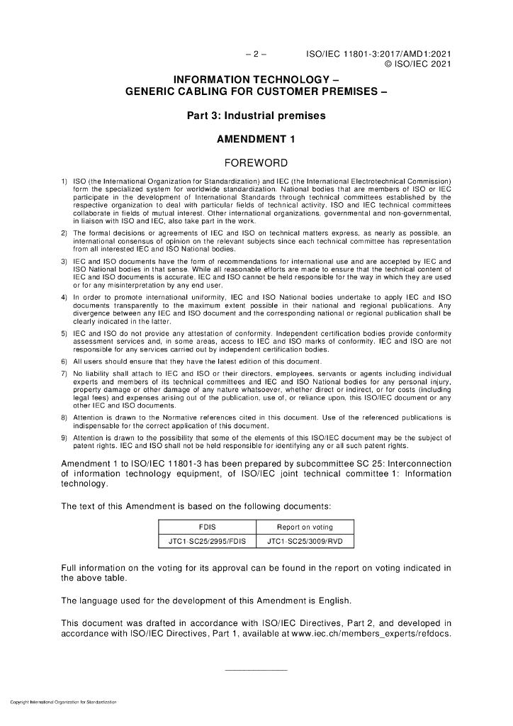 ISO/IEC 11801-3-2017+AMD 1-2021 信息技术 用户驻地综合布线 第3部分 工业厂房 修订1