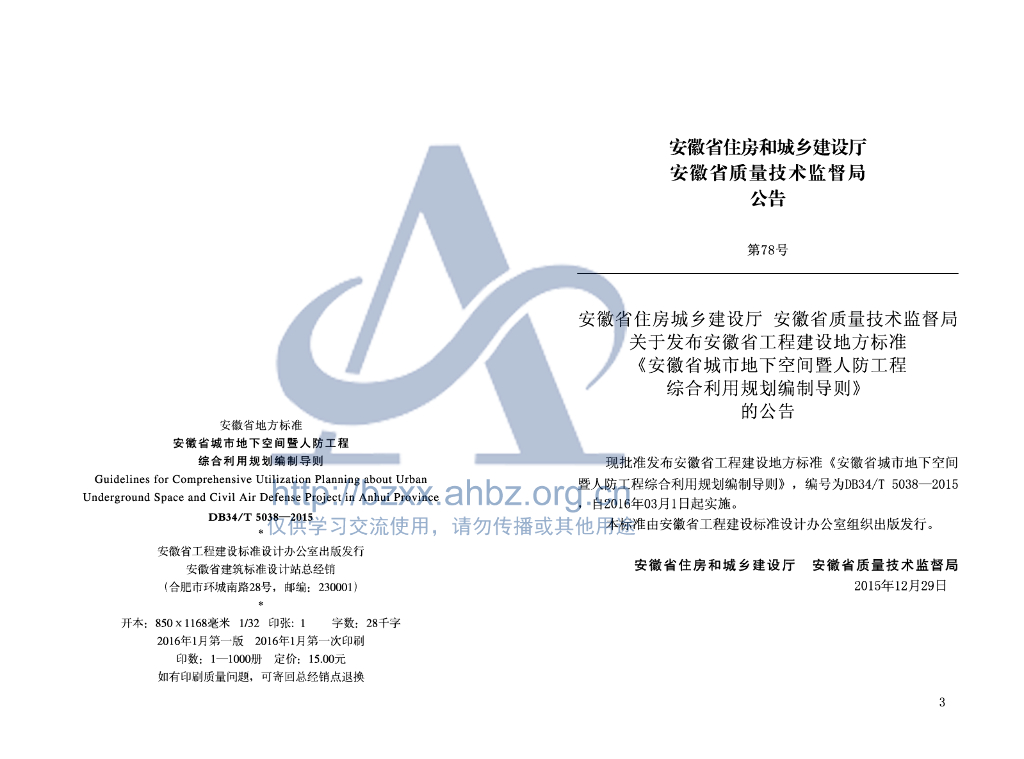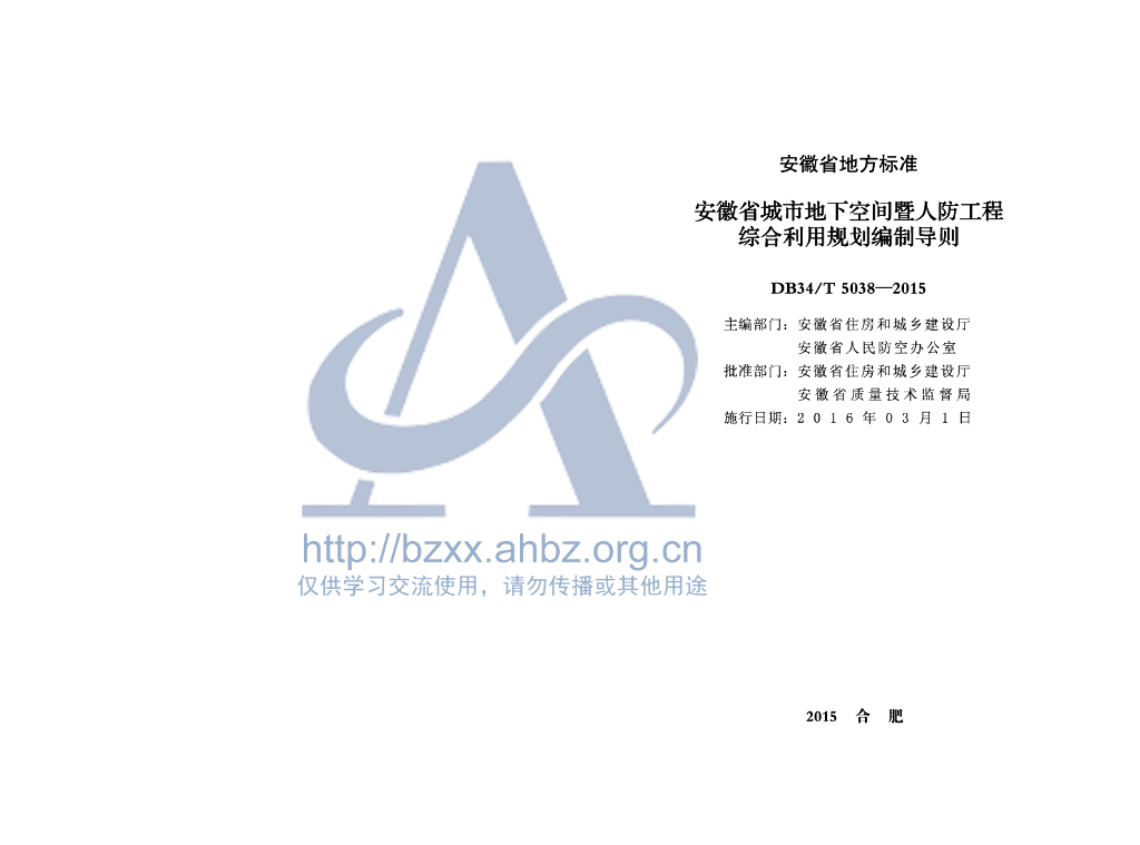 DB34/T 5038-2015 安徽省城市地下空间暨人防工程综合利用规划编制导则