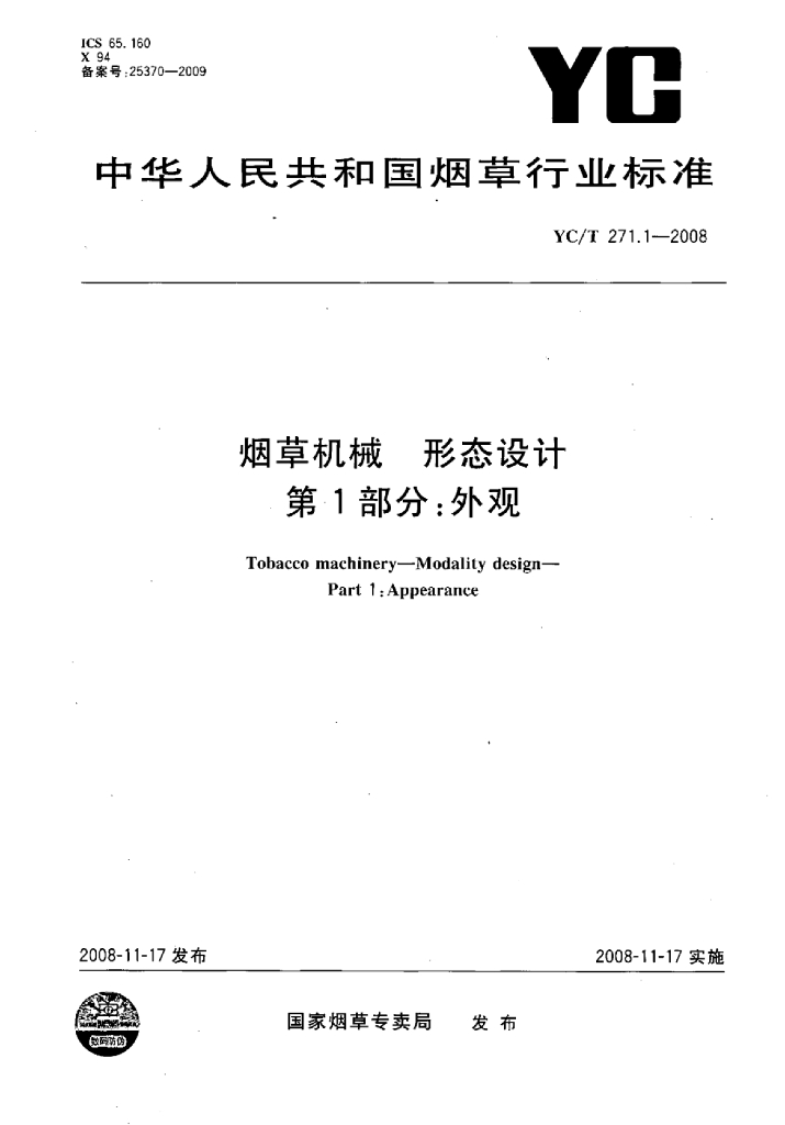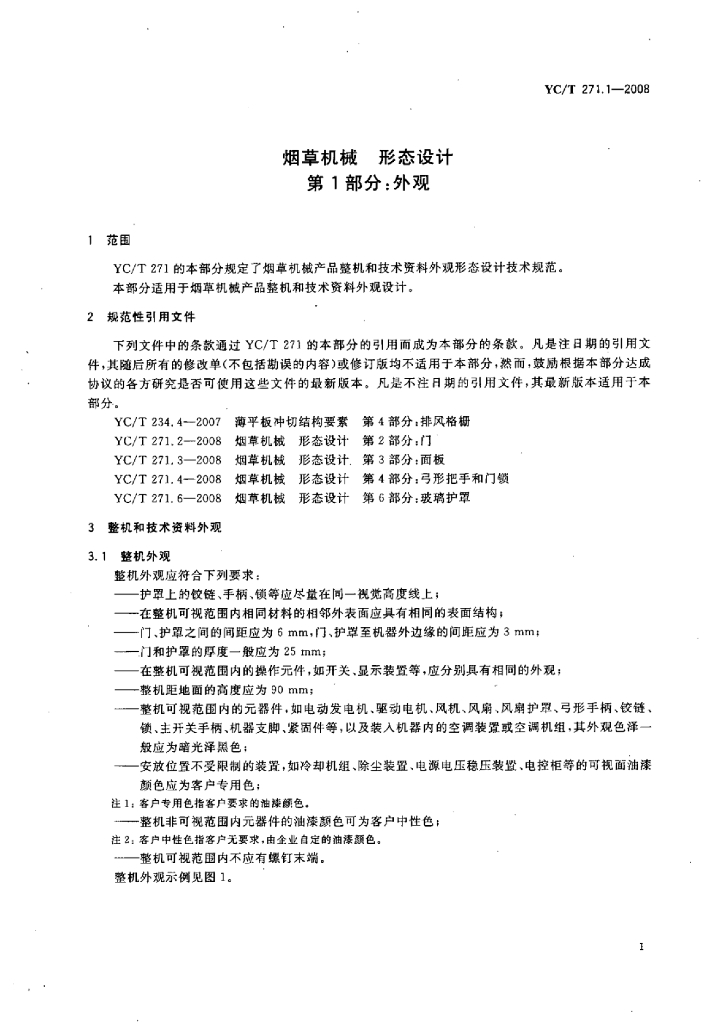 YC/T 271.1-2008 烟草机械形态设计 第1部分:外观