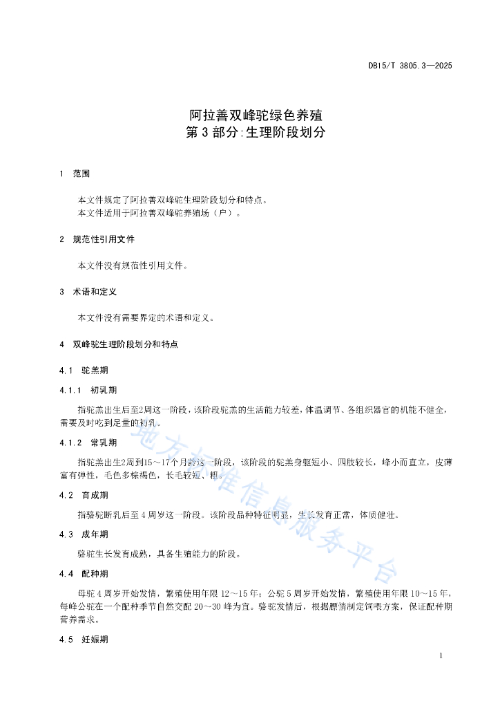DB15/T 3805.3-2025 阿拉善双峰驼绿色养殖 第3部分:生理阶段划分