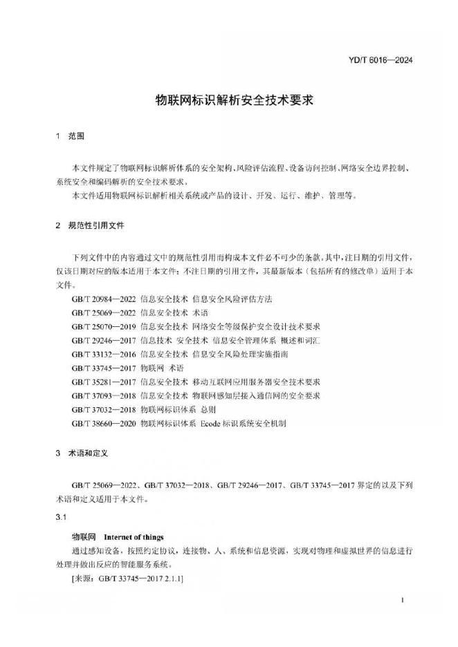 YD/T 6016-2024 物联网标识解析安全技术要求