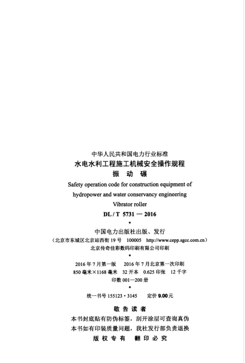 DL/T 5731-2016 水电水利工程施工机械安全操作规程 振动碾