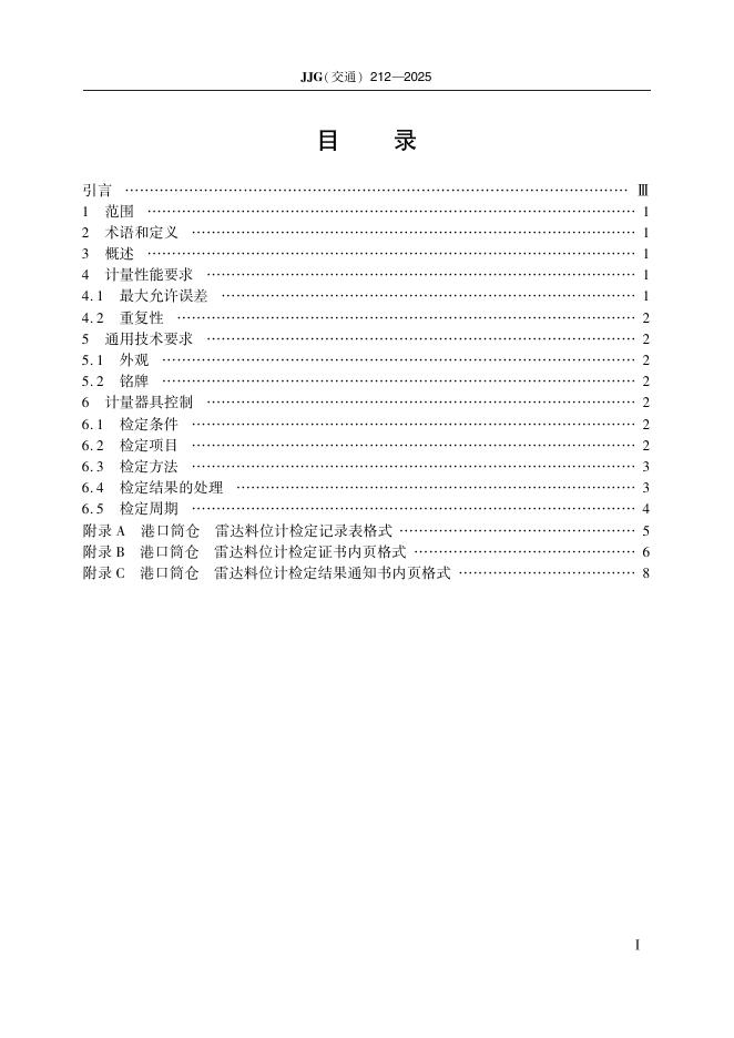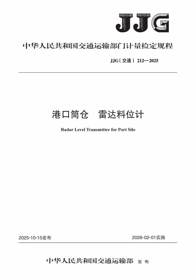 JJG(交通)212-2025 港口筒仓 雷达料位计