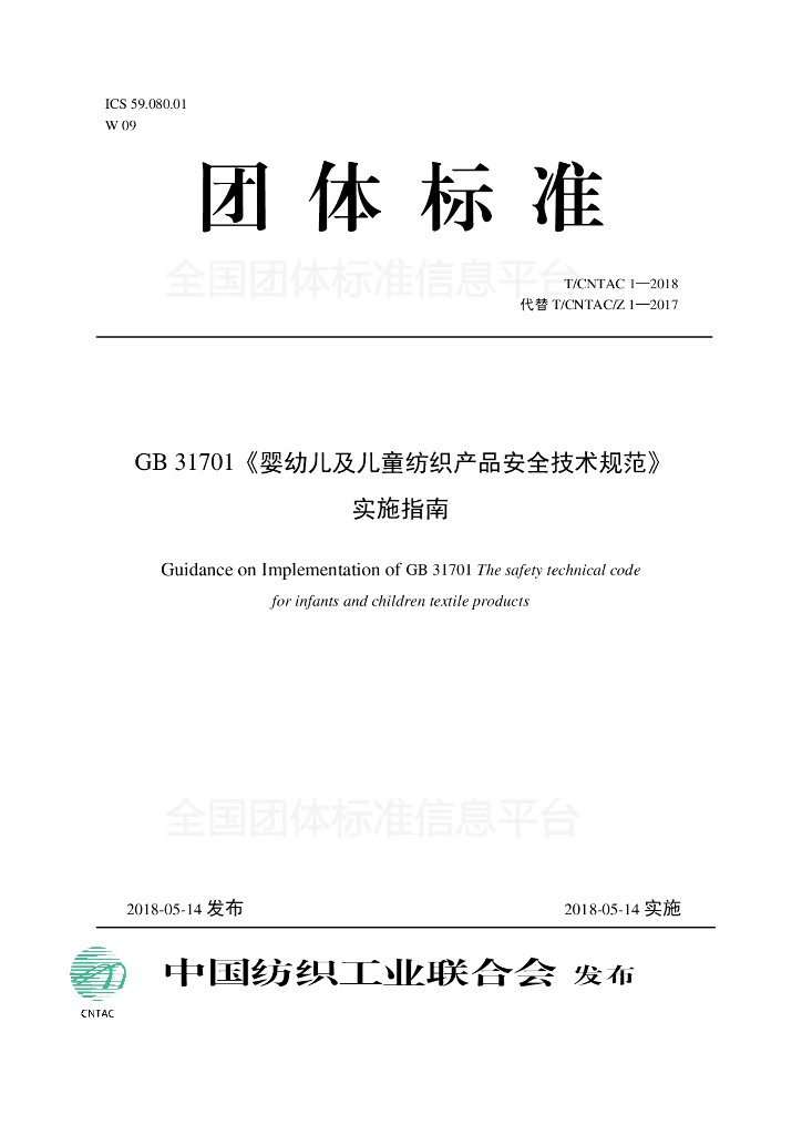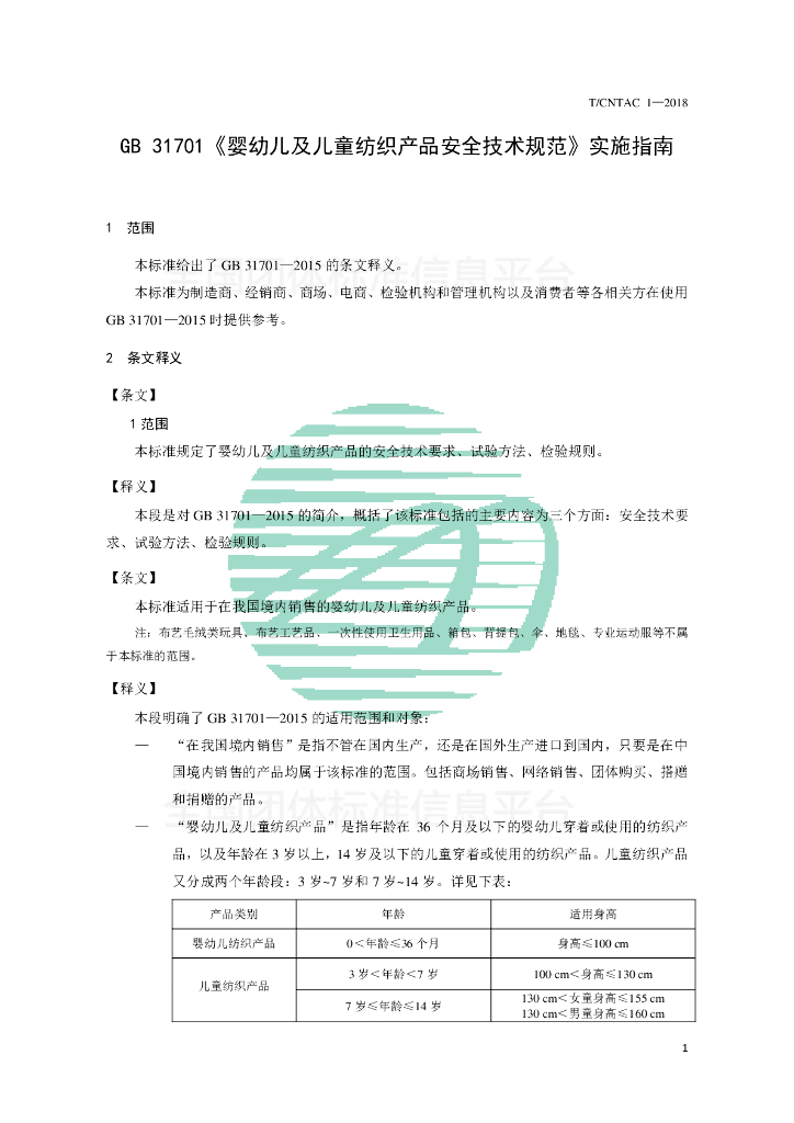 T/CNTAC 1-2018 GB 31701《婴幼儿及儿童纺织产品安全技术规范》实施指南