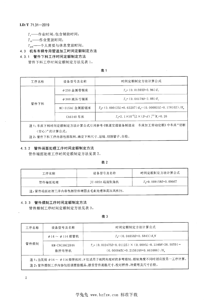 LD/T 71.31-2019 轨道交通装备制造业劳动定额 机车车辆专用管道加工