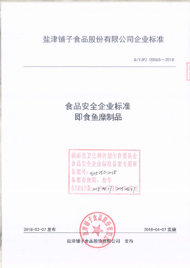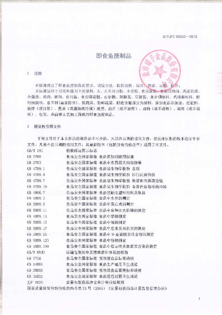 Q/YJPZ 0006S-2018 即食鱼糜制品