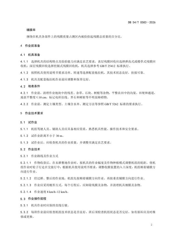 DB54/T 0583-2026 农田残膜机械化回收作业技术规范