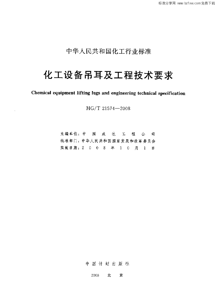 HG/T 21574-2008 化工设备吊耳及工程技术要求