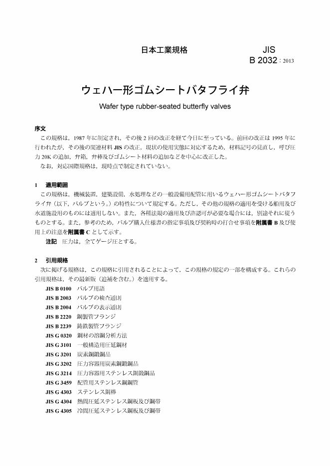 JIS B2032-2013 圆片形橡胶板底座蝶阀