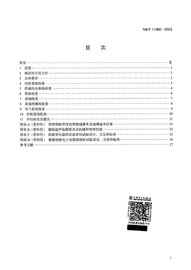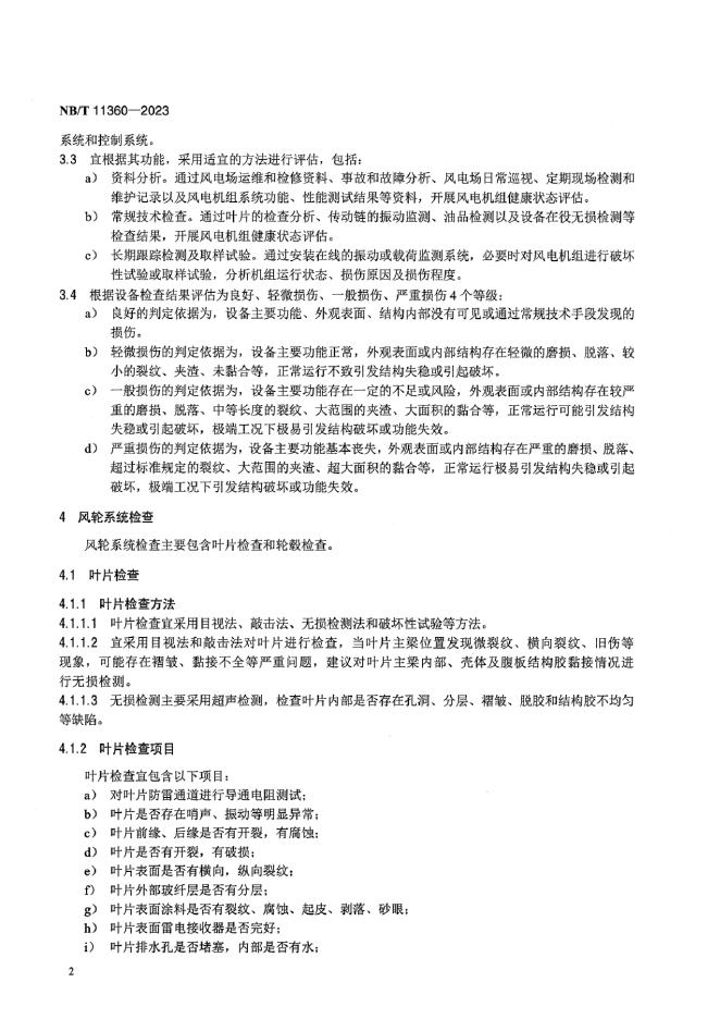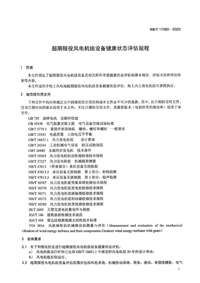 NB/T 11360-2023 超期服役风电机组设备健康状态评估规程