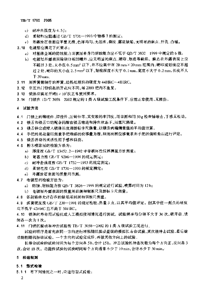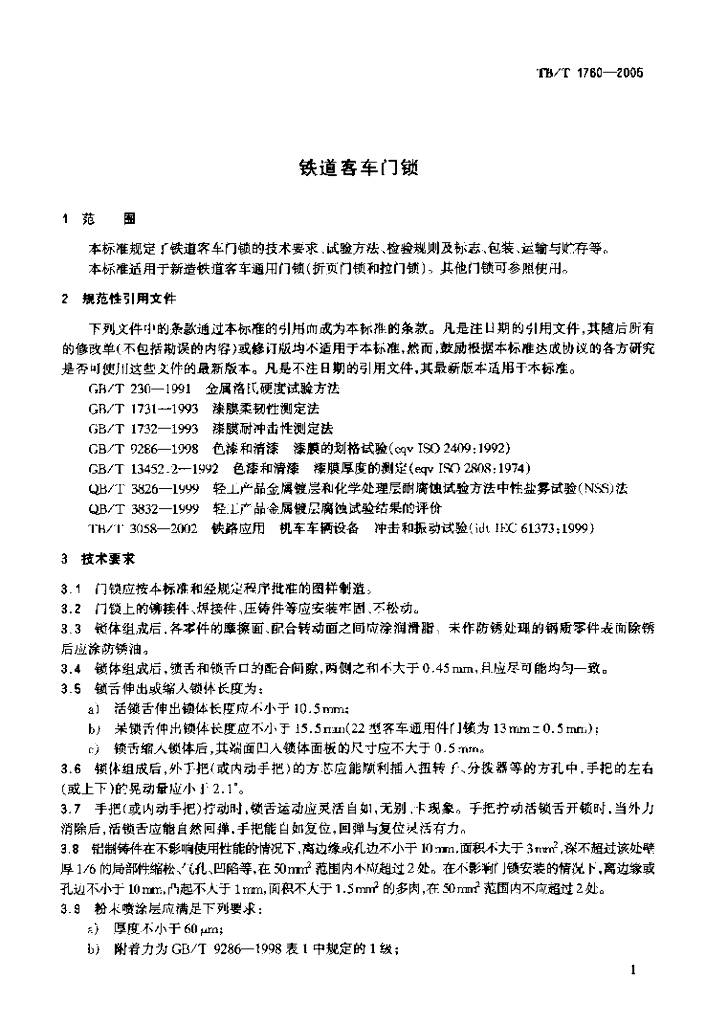 TB/T 1760-2005 铁道客车门锁