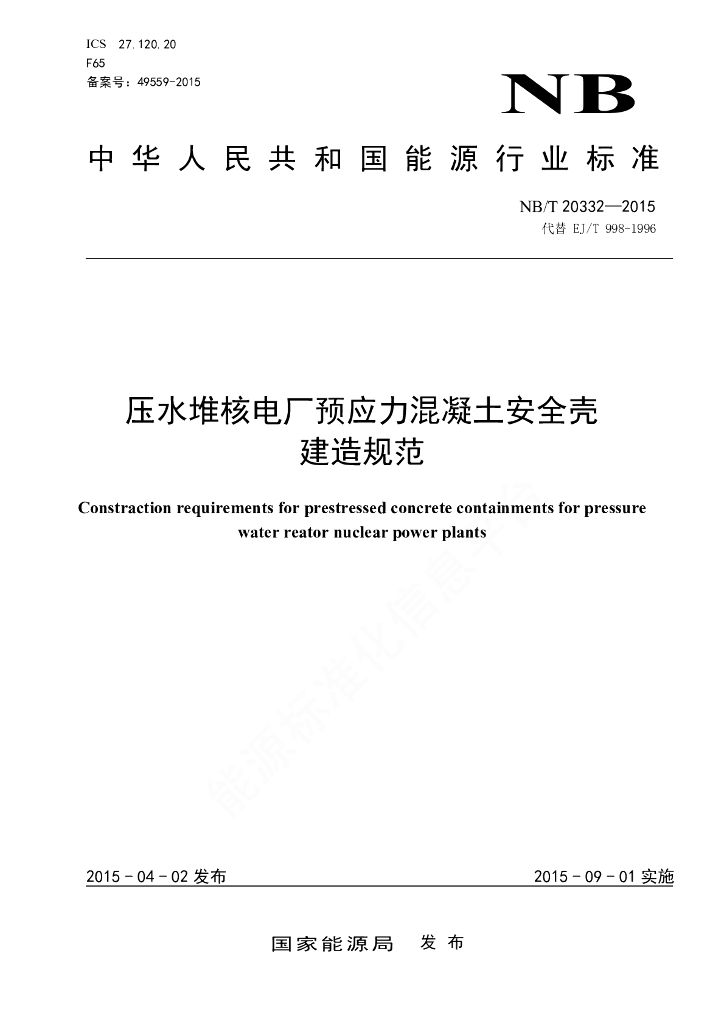 NB/T 20332-2015 压水堆核电厂预应力混凝土安全壳建造规范