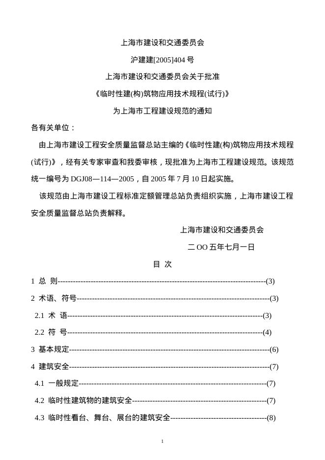 DGJ 08-114-2005 临时性建筑物应用技术规程.doc