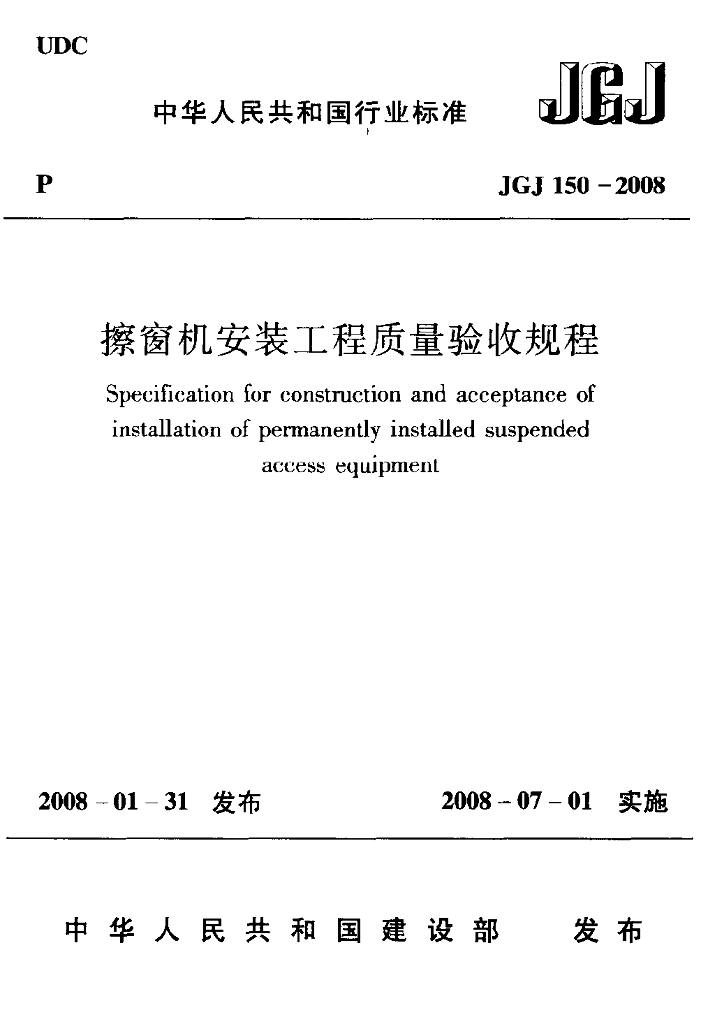 JGJ 150-2008 擦窗机安装工程质量验收规程