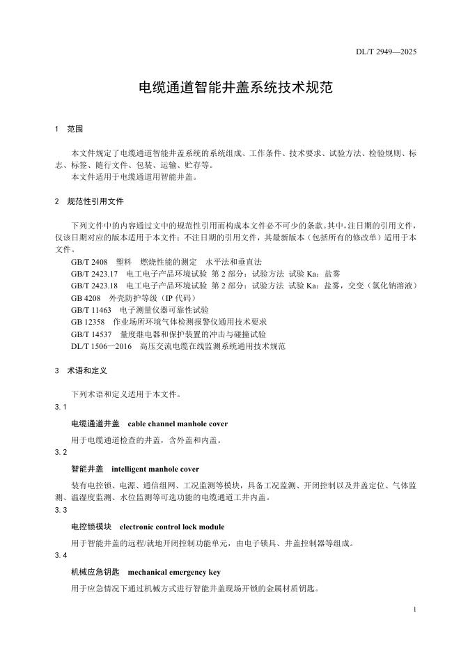 DL/T 2949-2025 电缆通道智能井盖系统技术规范