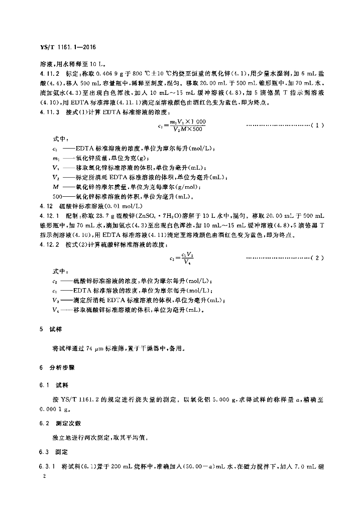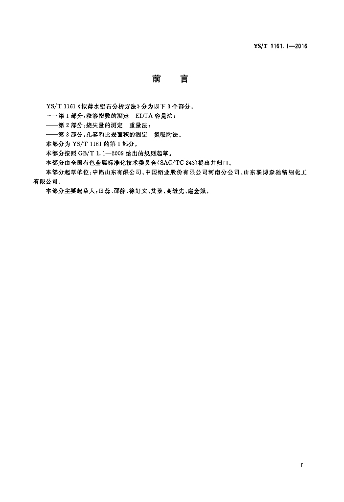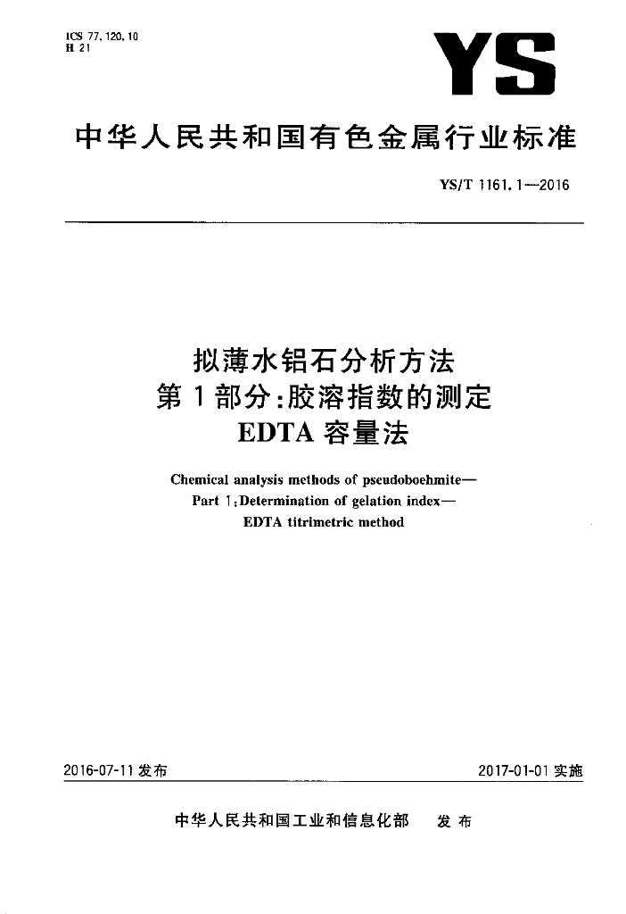 YS/T 1161.1-2016 拟薄水铝石分析方法 第1部分:胶溶指数的测定 EDTA容量法