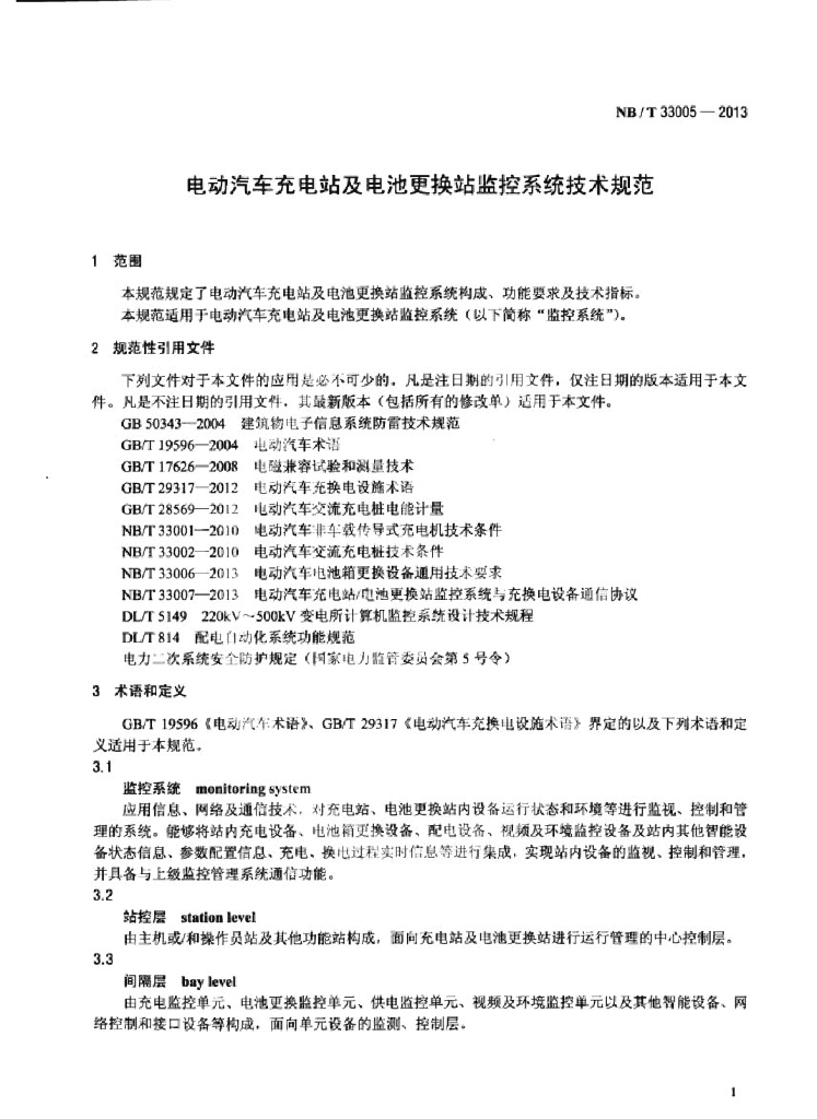NB/T 33005-2013 电动汽车充电站及电池更换站监控系统技术规范