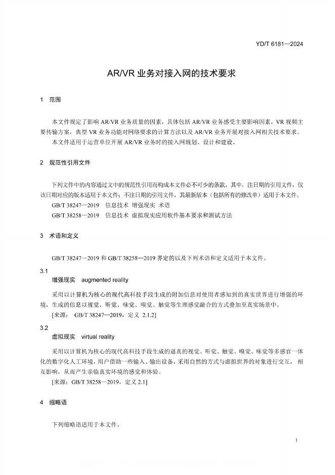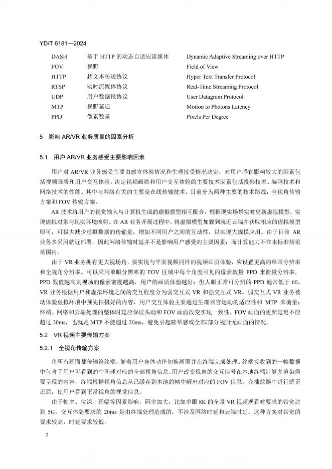 YD/T 6181-2024 AR/VR业务对接入网的技术要求