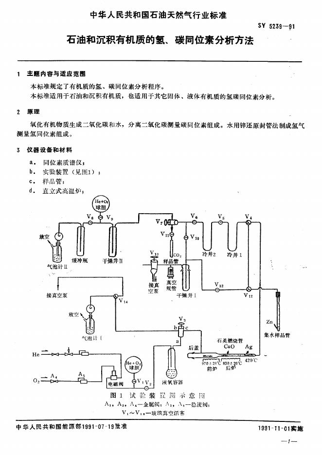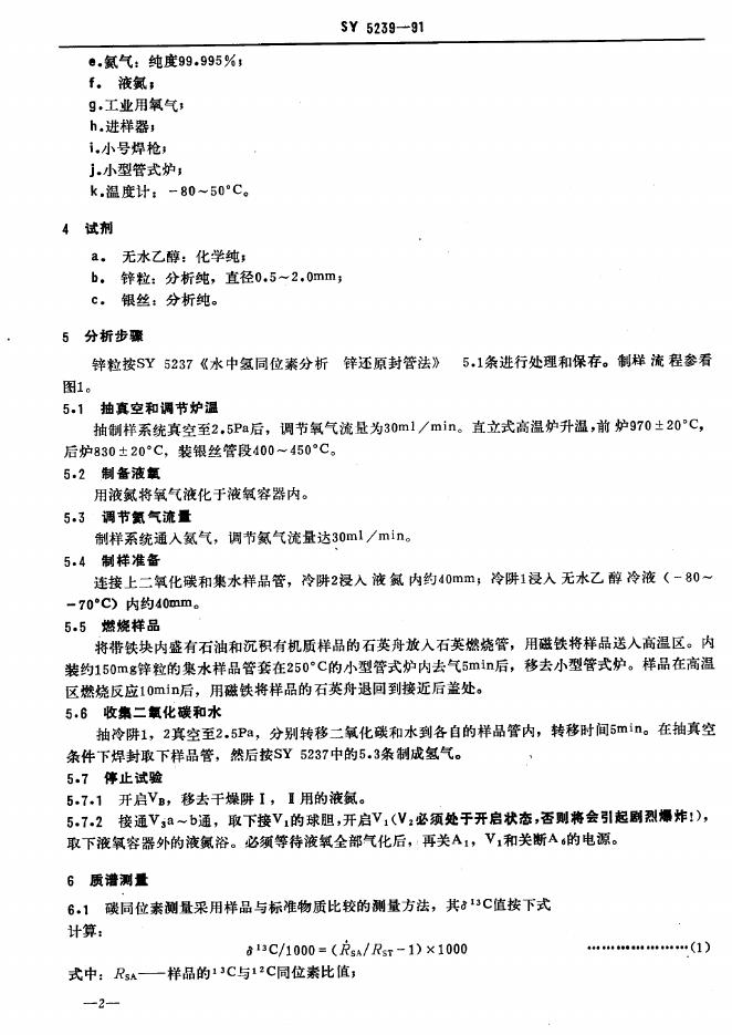 SY 5239-1991 石油和沉积有机质的氢、碳同位素分析方法