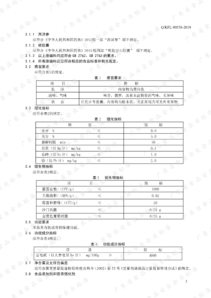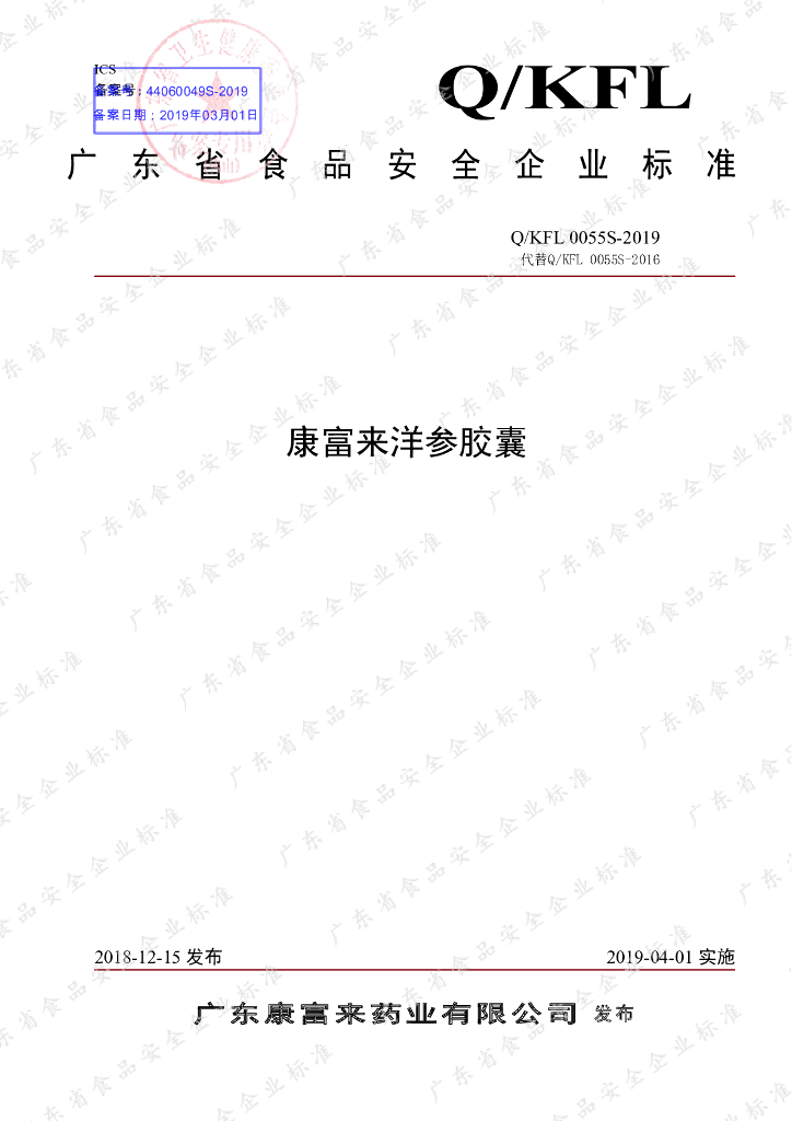 Q/KFL 0055S-2019 康富来洋参胶囊