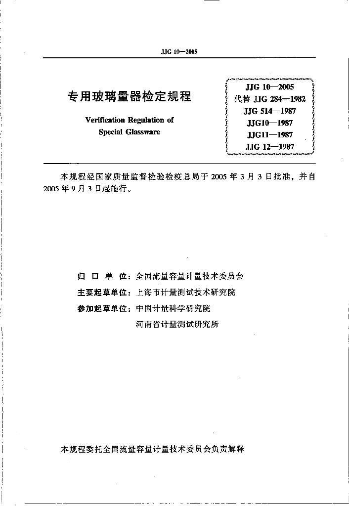 - 代替标准:JJG 284-1982、JJG 514-1987、JJG 10-1987、JJG 11-1987、JJG 12-1987