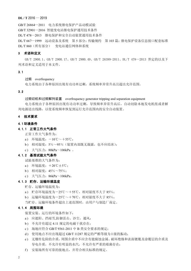 DL/T 2016-2019 电力系统过频切机和过频解列装置通用技术条件