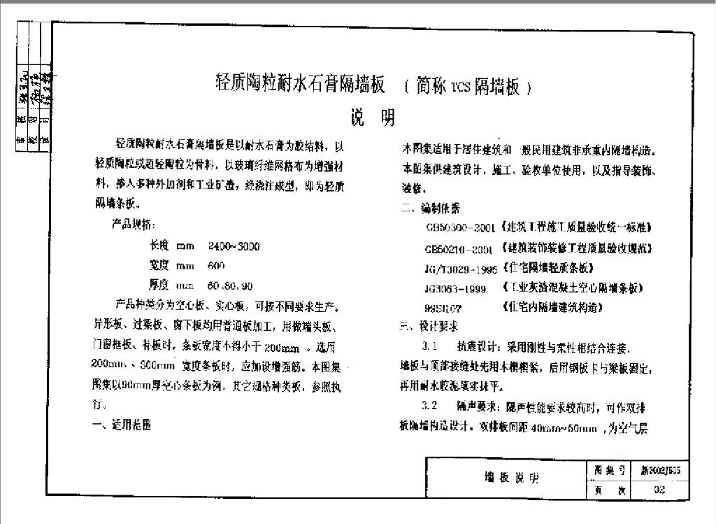 新2002J505 轻质陶粒耐水石膏隔墙板图集