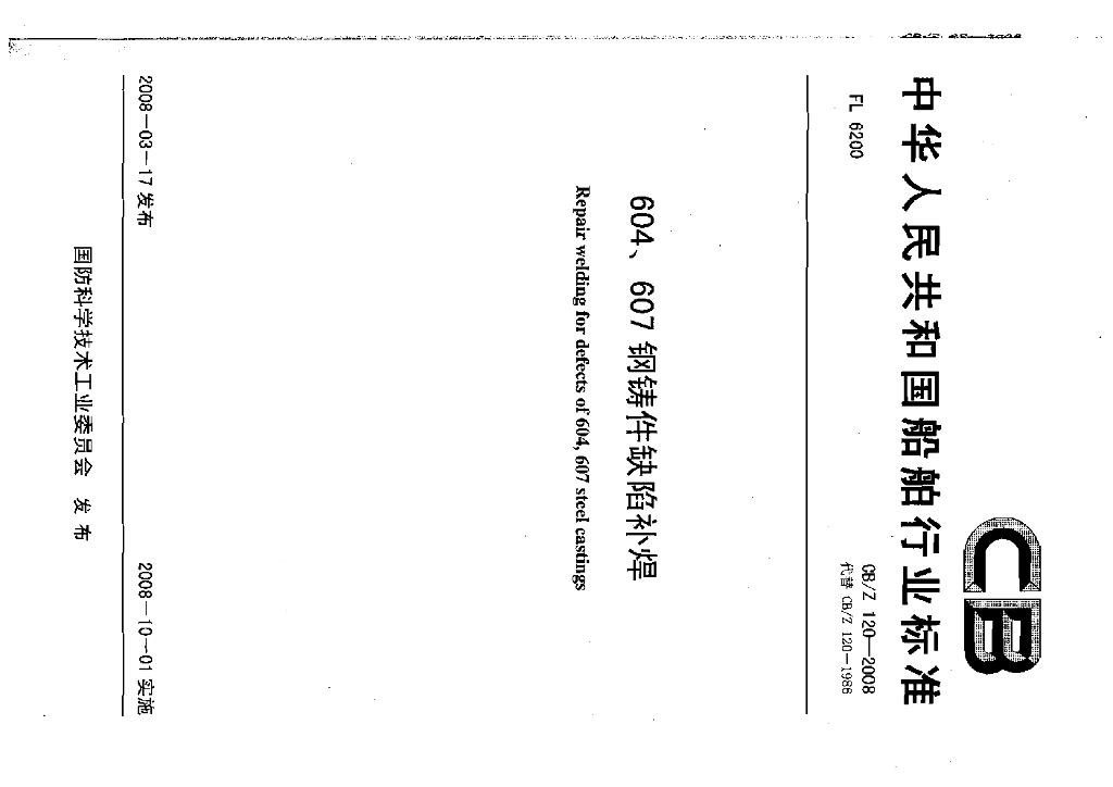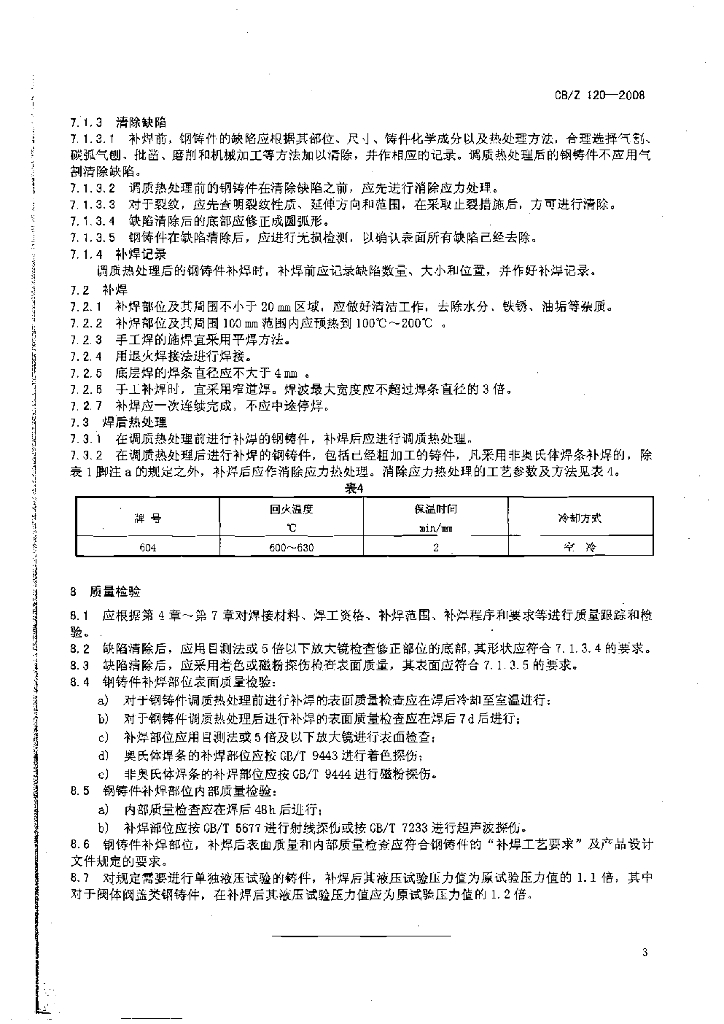 CB/Z 120-2008 604、607 钢铸件缺陷补焊