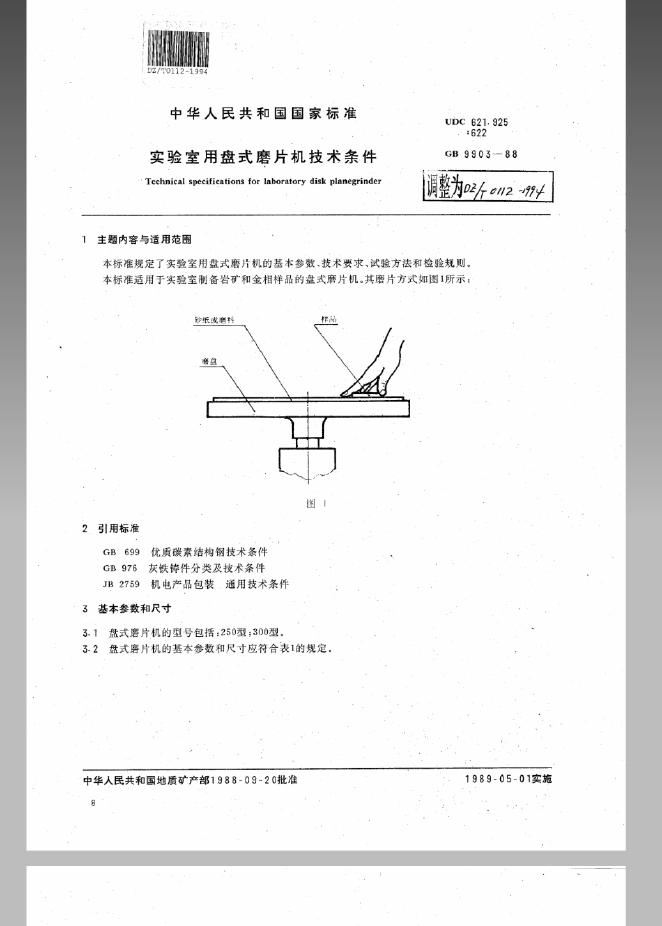 DZ/T 0112-1994 实验室用盘式磨片机技术条件
