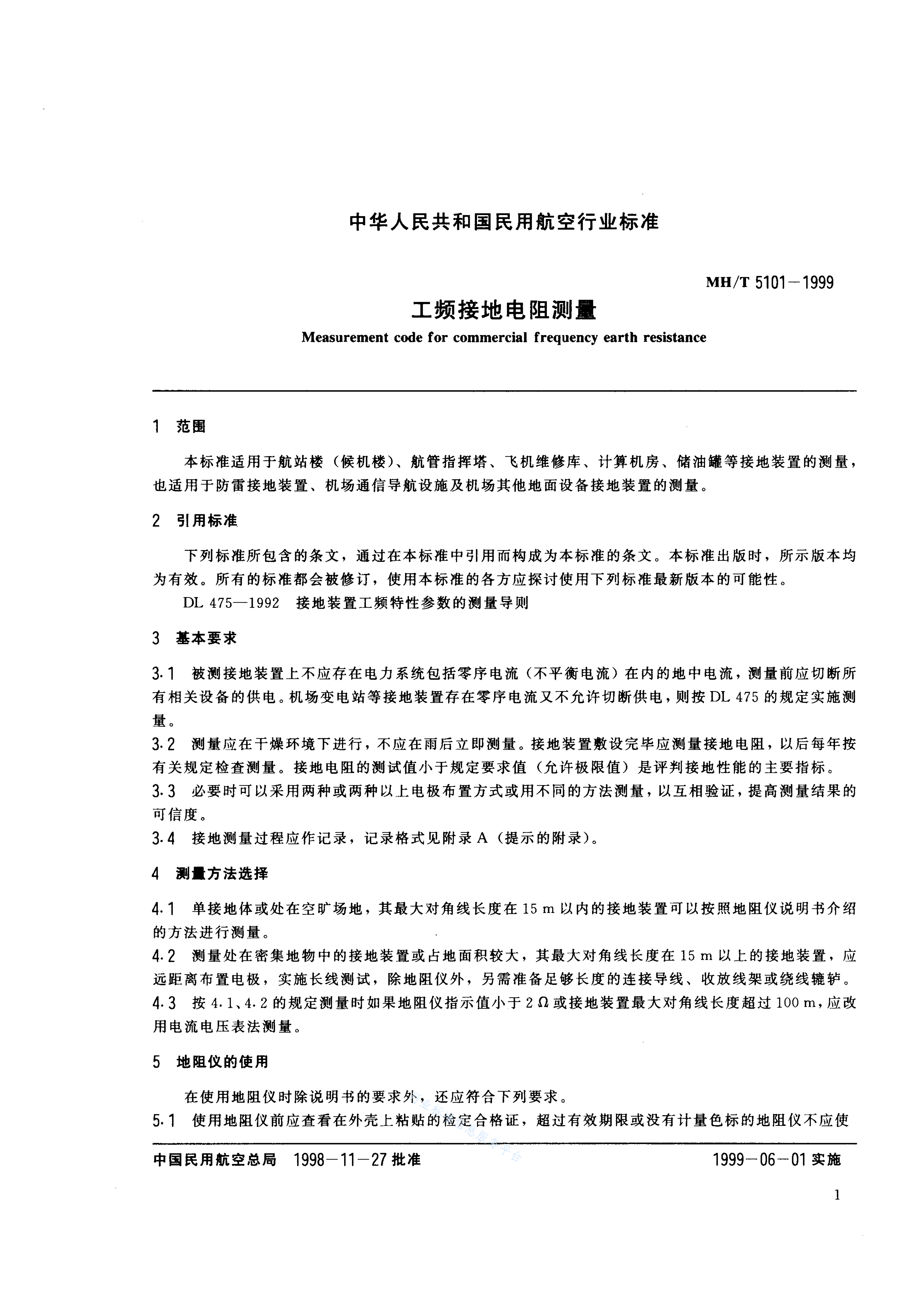 MH/T 5101-1999 工频接地电阻测量