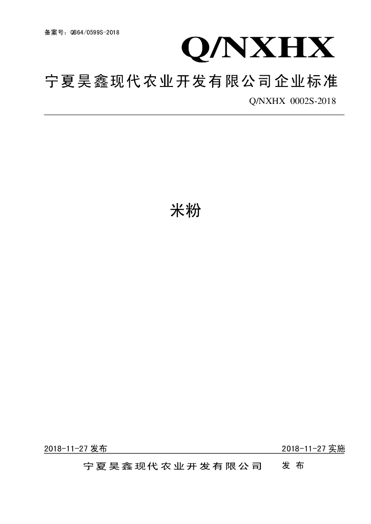 Q/NXHX 0002S-2018 米粉
